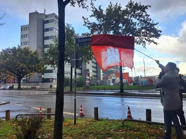 Bemutattuk a tervet Hamburg-Mittében, hiszen a Budapester Straße az ő fennhatóságuk alá tartozik. Először nehéz volt elmagyarázni, hogy ez nem politikai, hanem kulturális indíttatású projekt – egy megemlékezés a szabadság hősei előtt.