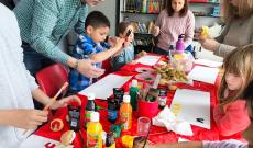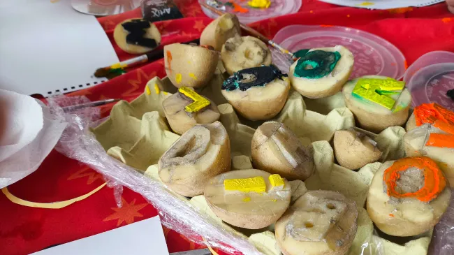 A gyerekekkel krumplinyomdákat készítettünk: kifaragtam az ábécé betűit, és ezek segítségével kellett a kedvenc magyar szavaikat kinyomdázniuk. Óriási lelkesedéssel nyomták ki a temperákat, majd büszkén nyomták papírra a betűket. Ezt követően régi, már nem használt CD-lemezeket díszítettünk fel, amelyekre szintén rákerültek a kiválasztott magyar szavak. A feldíszített CD-kből később videót készítettem az egyesület honlapjára.