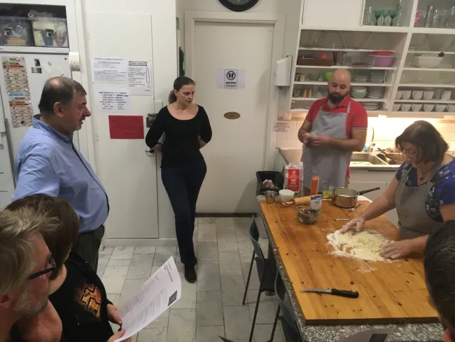 Estére már vártunk egy kisebb csapatot főzőest sorozatunk decemberi programjára. Mire az érdeklődők megérkeztek, már teljes pompájában ragyogott a ház, így elcsíphettük az első álmélkodó, rácsodálkozó pillantásokat, megjegyzéseket, ahogy az emberek beléptek az előtérbe, ami igazán szívmelengető volt. Ezután Feldőtő Emese várta őket a konyhában, ahol megtanulhattak mákos bejglit készíteni. Míg a sütemény sült, a főzőest résztvevői együtt elfogyaszthatták a számukra készült gulyáslevest, majd a karácsonyfánál kellemes beszélgetés mellett mindenki nagy megelégedésére a frissen sült bejglit is megkóstoltuk.