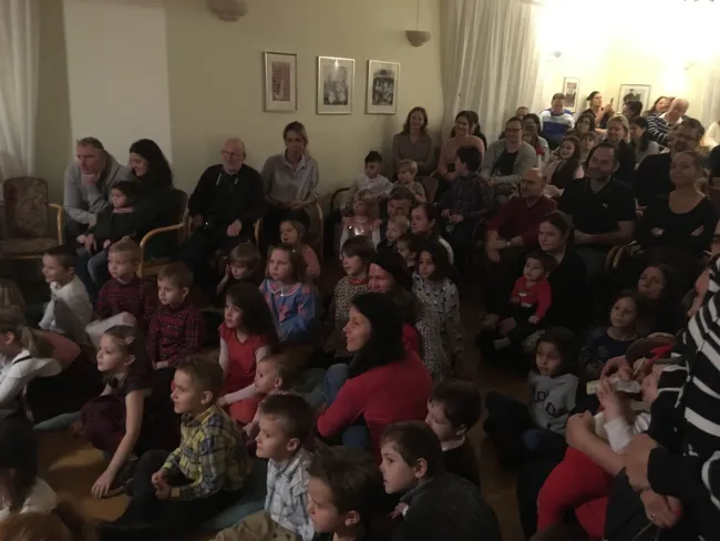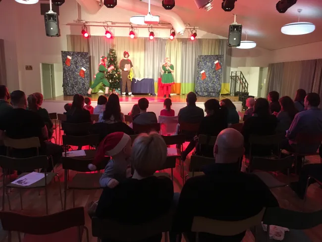 Vasárnap megérkezett a Mikulás hozzánk is! Először Uppsalába kopogtatott be az Uppsalai Magyar-Svéd Egyesület gyermekeihez, akik énekszóval várták és olyan lelkesen dalolták a „Hull a pelyhes fehér hó...” kezdetű dalt, hogy kint valóban elkezdett havazni... varázslatos volt. Miután a Pesti Kisszínház színészei a Mikulás ajándékait is kiosztották, gyorsan bepattantak szánjukba (amelynek ezúttal négy kereke volt, szerencsére a téli svéd közlekedésre leginkább alkalmas szöges gumikkal felszerelve) és már száguldottak is Stockholm felé, hogy délután az UHU (Stockholmi Magyar Családi Kör) gyermekeit is meglephessék. A „Mikulás okosórája” című előadásnak itt is nagy sikere volt és az összes – több, mint 70 – gyermek a kis csomagját elégedetten szorongatva, vagy már az első csokoládét, mandarint majszolva térhetett haza.