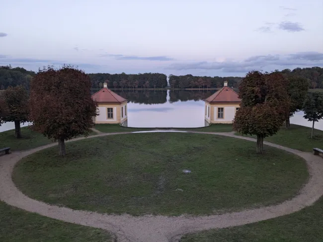 A mesterséges szigeten álló impozáns épület és a körülötte lévő tó látványa mindenkit lenyűgözött.