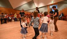 A rendezvény délután 5 órakor gyermektáncházzal indult, ahol nagy örömünkre közel harminc gyermek táncolt együtt, vidám hangulatban ismerkedve a népi játékok és tánclépések világával.