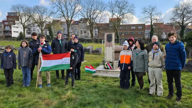 A brüsszeli 82. sz. Báthory István cserkészcsapat 2025. március 15-én részt vett az 1848–49-es forradalom és szabadságharc tiszteletére rendezett megemlékezésen, amelyet a magyar közösség Kossuth Lajos édesanyjának, Kossuth Lászlóné, tyrlingi Weber Karolina sírjánál tartott a Saint-Josse-ten-Noode temetőben.