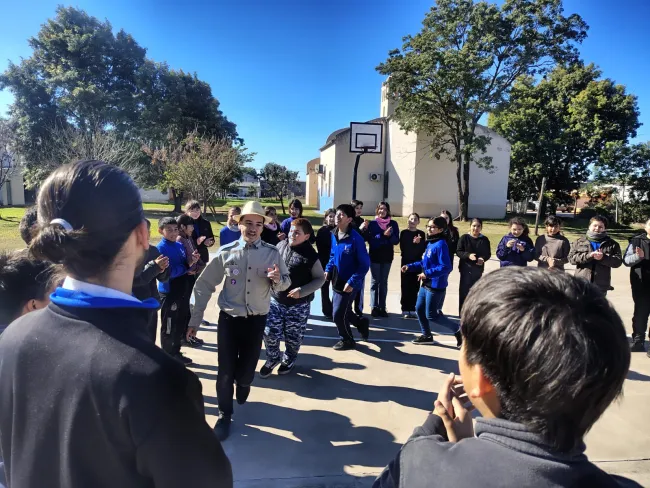 A két iskolában, több időpontban, 30-40 fős csoportokban összesen 670 gyerek számára tartottunk interaktív cserkész bevonó-előadást. Az érdeklődők száma szépen nőtt. A verbuválás során nem tettünk különbséget a magyar és nem-magyar származásúak között: minden 10–12 éves kor közötti iskolás gyerek szabadon jelentkezhetett a cserkészet-előkészítő foglalkozásokra. Az érdeklődők többsége mégis magyar származású volt, gondolom azért, mert nem rejtettük véka alá, hogy magyar cserkészetet szervezünk, és magyar nyelvet is oktatunk. A leglelkesebbek közé tartozott a Perka család, Tóthék, Korcsik iskolaigazgatónő gyerekei, és még sokan mások. Bár a kezdeti lelkesedés után nagy volt a lemorzsolódás is, végül kialakult egy kb. 15 fiúból és 5 lányból álló kör, akikre számíthattunk. Most, az ösztöndíjas év vége felé levonható egy mérleg: egy-egy őrsi foglalkozáson általában a tagság fele jelenik meg, azaz 6-8 fiú, a lány őrsben pedig két stabil résztvevő mellett még egy-két kislány. Kolos javaslatára a formálódó kezdeményezésünk nevet is kapott: ez a Czetz János Cserkész-előkészítő csapat. Spanyolul kicsit hosszabb: Grupo Preparatorio „Juan Czetz” de los Scout Húngaros en Chaco Argentino. Adja Isten, hogy kezdeményezésünkből valóban cserkészcsapat legyen valaha!