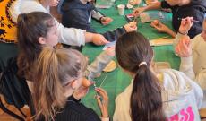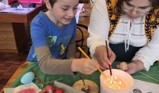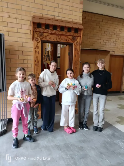 A tanulók edukációjára továbbra is ügyelve a program egy rövid előadással kezdődött, amely során megbeszéltük, mit és hogyan is ünneplünk húsvétkor. Megvitattuk az ünnep keresztény jelentőségét és a hozzá kapcsolódó népszokásokat, majd – ahogyan azt már tőlem megszokhatták a gyerekek – játszottunk egyet. Az interaktív feladat során a diákok a gyimesi hímes tojások mintavilágát igyekeztek megfejteni.