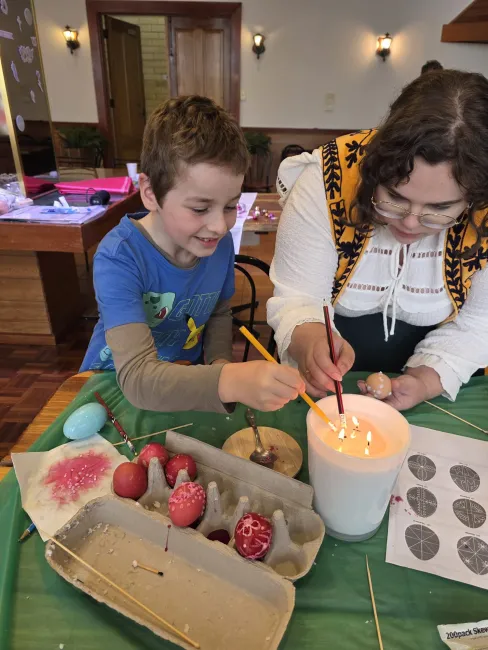 Bendőnket megtömve pedig egy kis kézműveskedéssel és tojáskereséssel zártuk a napot. Tojásos színezőkkel és festékkel készültünk a kicsiknek, a nagyobbak pedig a tradicionális tojásírást is kipróbálhatták. Szerény személyem és a húsvéti nyuszi jóvoltából pedig mindenki, aki szemfülesen sétált a wantirnai Magyar Központ falai között, egy-egy csokival és locsolóverssel töltött színes tojáskát is vihetett haza.