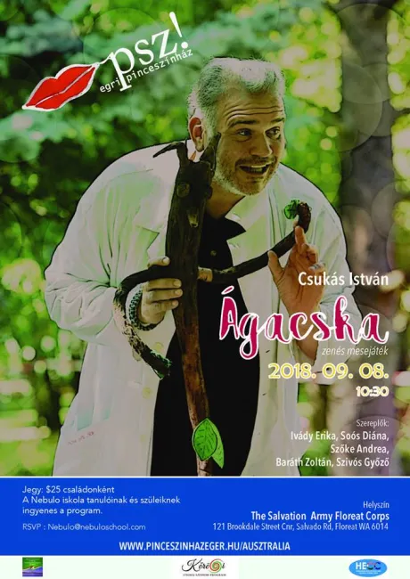 Az egri színház két előadással is megörvendezteti a perthi-i nézőket. Szeptember 8-án délelőtt Csukás István Ágacska című mesejátékát mutatják be az érdeklődőknek. A Nebuló iskola diákjainak és családjaiknak ingyenes lesz a belépő. 19 órától pedig a felnőtteket várják, a Macedón klubban a Csoportterápia lesz látható. Cím: 51 Albert St, North Perth WA 6006. 18 év alattiaknak az előadás ingyenes lesz.
