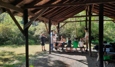 Reggel 10 órakor érkeztünk a Hi Camp nevű kajak és kenukölcsönzőhöz, ahová szép lassan megérkeztek a gyerekek is. Az egész napos programot a folyóparton kezdték az örsök különféle cserkészethez kapcsolódó feladatokkal, forgószínpad szerűen váltva egymást az állomásokon. Az állomásfőnökök vezetésével a kiscserkészek játékos formában gyakorolhatták az égtájak megállapítását a Nap mozgásából, egymással versenyezve cserkészettel és Magyarországgal kapcsolatos kérdésekre igyekeztek minél gyorsabba, de helyesen válaszolni, valamint a sátorfeszítő csomó tökéletes alkalmazása mellett próbáltak egy botot egyenesen tartani három kötél kifeszítésének a segítségével. Játékos formában, szinte észrevétlenül tanították meg nekik Magyarország nagyobb földrajzi tájainak elnevezéseit, a tájékozódás fortélyait és a biztonságos sátorállításához elengedhetetlen csomó alkalmazását.