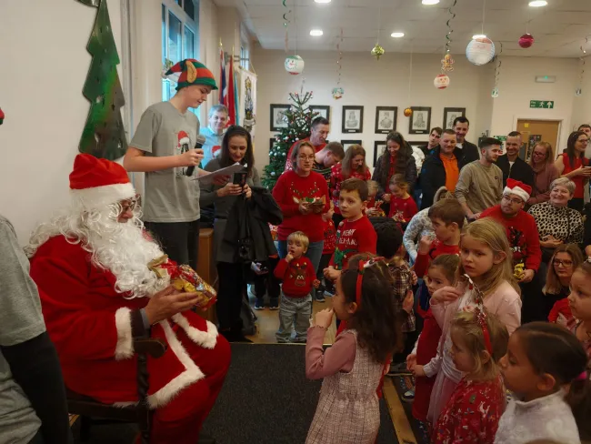 Másnap Mikulás-járás és jótékonysági vásárral készültünk, ahol a gyerekek találkozhattak a Mikulással. Közös éneklés, tánc és jókedv lepte be a Szent István Házat.
