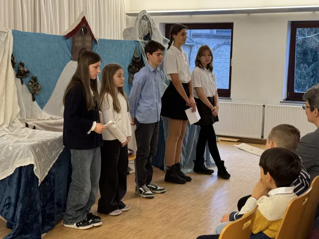 Ezt követően József Atya és Mustos Edit, akik a kölni Magyar Tanoda vezetői örömmel osztották szét a gyerekek között az aktuális suliújságot, mely a 2025 január és decembere közötti időszak emlékeit hordozza.