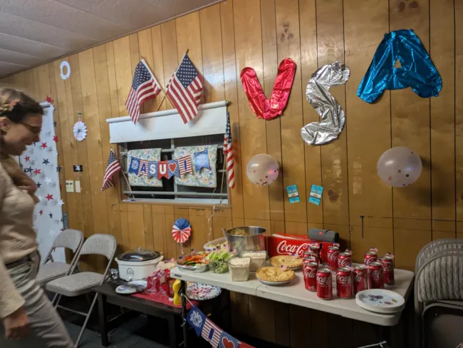 Szombaton a rendszerbe való „beléptetés” zajlott. Kiosztottuk a vörös nyakkendőket – a cserkészet tilos volt, úttörőként voltunk jelen a táborban. Az étkezés jegyrendszerhez kötődött, mindent közösen, központi szabályozás szerint lehetett fogyasztani, egymást elvtársnak szólítottuk, de még a WC-használat és a WC-papír kiosztása is központi irányítás alá került. A nap fókuszában az 5 éves terv teljesítése állt, a besúgórendszert pedig egy élőszereplős Among Us-játék formájában ismerhettük meg. Az estét egy csernobili hangulatú horrorerdő zárta, majd egy takarodó utáni titkos gyűlésen elindult a szóbeszéd: egyre többen disszidálnak, Amerikába szöknek a jobb élet reményében. Itt derült ki az is, hogy a Hontalan Sas őrs sikeresen elhagyta az országot, Németországon keresztül Amerikába jutott, magával víve a Magyar Cserkész Szövetség alapító leveleit, és megalapította a Külföldi Magyar Cserkészetet – biztosítva, hogy a magyar cserkészet a diktatúrán túl is tovább éljen.
