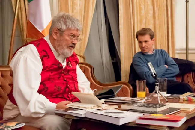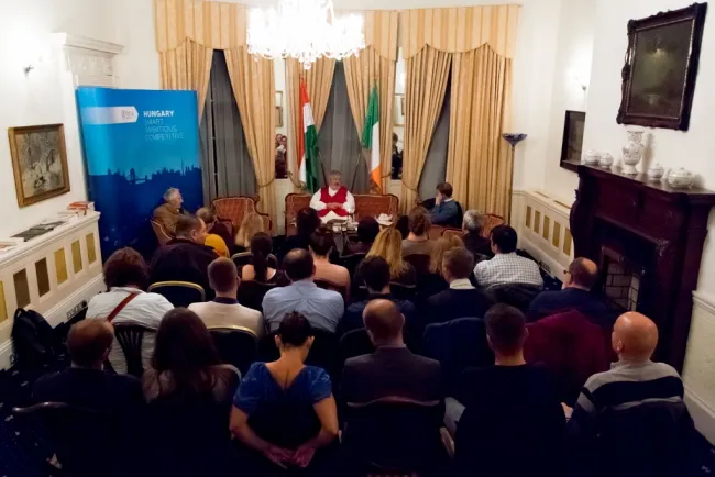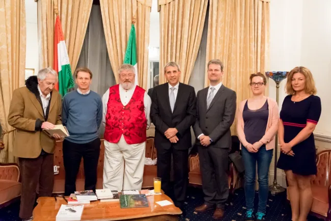 Telt ház volt Magyarország Dublini Nagykövetségének termében azon az irodalmi esten és beszélgetésen, amelynek a Hungarian Culture Days/Culture Bridge meghívására Dublinba érkező Szőcs Géza volt a vendége.