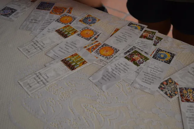 Az istentiszteletet a himnusz eléneklésével zártuk, majd magyar szokás szerint Gyöngyi átadta a résztvevőknek hozott igés kártyákat.