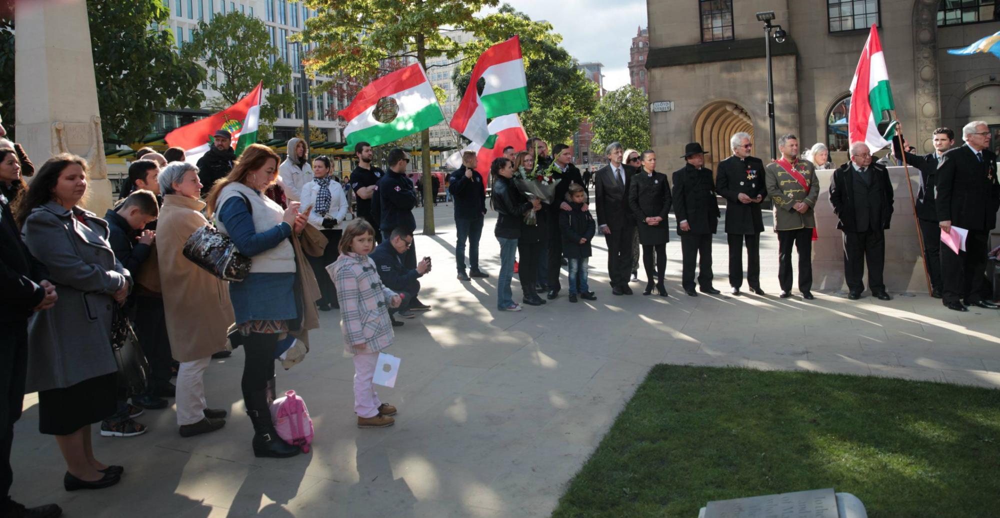 Méltó helyszínen, a város szívében ünnepelte a Manchester környéki magyarság az 1956-os forradalom és szabadságharc hatvanadik évfordulóját. Az ismeretlen katona emlékművét még egy héttel korábban a hercegi pár, Vilmos és Katalin tisztelte meg jelenlétével: az ő pipacskoszorújuk mellé kerülhettek a magyar közösség által készített virágfüzérek, csokrok nemzeti ünnepünk alkalmából.