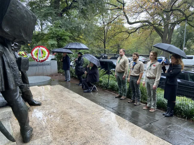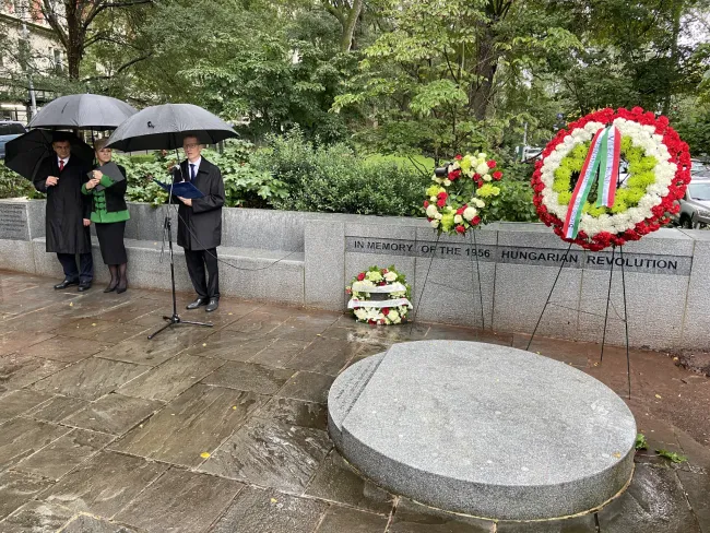 Így történt ez 2023. október 20-án is, ahol a Magyarország Főkonzulátusa, illetve a helyi cserkészek és egyházi méltóságok, valamint szabadságharcosok jelenlétében koszorúzták meg az emlékművet. A himnuszt követően Szántovszky Nikolett közösségi diplomata köszöntötte a résztvevőket, majd Pásztor István főkonzul mondott beszédet, aki szerint az ’56-os hősökre nemcsak emlékezni kell, hanem minél többükkel beszélgetni is, amíg tehetjük, hiszen rengeteg élettörténetet lehet ezáltal megismerni. A forradalom után számos szabadságharcos menekült az Egyesült Államokba és talált új hazára, köztük többen rendszeresen látogatják az amerikai magyar közösség programjait.
