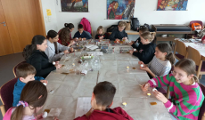 A tojásokon megjelentek különböző növényi szimbólumok és egyéni jelek, melyek a gyerekeknek jelentettek sokat. A kis tojástartókat is lelkesen gyártották a fiatalok, nem törődve azzal, hogy mekkora maszlagot is hagynak maguk után a ragasztóval.