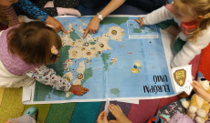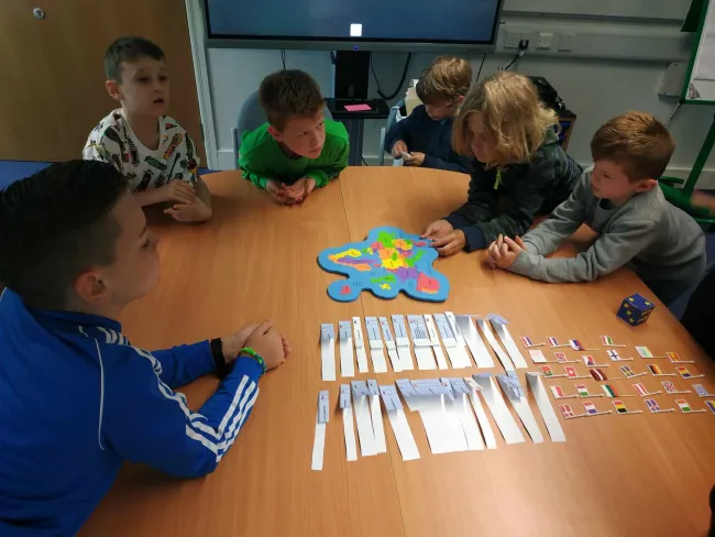 A 7-10 éves korosztály számára egy puzzle térkép, a hozzá tartozó országzászlók és minden országhoz külön kérdések jelentették a tanórai elfoglaltságot. Ez az interaktív foglalkozás rendkívül komplex tudást adott a gyermekeknek, hiszen