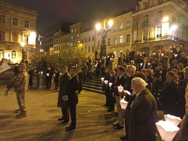 A mise után a résztvevők fáklyákkal a kezükben gyülekeztek a székesegyház előtt, majd átvonultak Brüsszel utcáin az Ismeretlen Katona Sírjához. A fáklyás felvonulást két honvéd vezette egy koszorúval, majd mögöttük a cserkészek haladtak, akik büszkén lobogtatták a nemzeti zászlókat a menet élén. A fáklyák a szeles idő következtében a menet közben kialudtak, de még így is sokkal kegyesebb volt velünk az időjárás, mint a korábbi években.