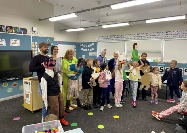 Mindemellett a sok foglalkozás mellett még egy bábelőadás is belefért a napba, melyről későbbiekben az iskola ekképpen írt Facebook oldalán: „A Magyar Iskola Sydney tanulói különleges foglalkozáson vehettek részt a hétvégi iskolában. A Huncutka Bábszínház / Huncutka Puppet show vezetője és bábművésze, Mátyásné Fűzi Csilla látogatott el hozzánk, akinek rendezésében egy rögtönzött, interaktív bábszínházba varázsoltuk el a gyerekeket. Döbrögi, Lúdas Matyi voltak a darab főszereplői, de a gyerekek is részt vehettek lúdként, építőmesterként s még Döbrögit is jól elnáspángolhatták. Tanáraink is aktív szereplői voltak a játéknak, s persze Virág fantasztikus fuvolajátéka és népdaléneklése sem maradhatott el.”