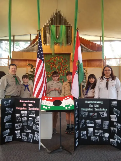 Az ünnepség hangulatát megadva, a koncert után a közönség szeretetvendégségen vehetett részt, finom falatok és kávé mellett beszélhették meg a koncerten hallottakat. A desszertek elfogyasztása után, az esemény folytatásában ünnepi szónokok voltak Dr. Hegyváry Csaba, aki élő történelemórát tartott, ismertetve a forradalom tényeit, saját megélt ifjúkori élményeivel. Dare Lilla Márai Sándor Mennyből az angyal c. versét szavalta. Orbán Csaba, a szövetség elnöke és a helyi cserkészcsapat vezetője személyes gondolatait osztotta meg az ünneplő közönséggel, a családjában megélt korabeli történésekkel. Beszédét a forradalom mindenkori igazságával zárta: „Megbocsátani lehet, feledni soha!” Az ünnepség a Forgatós Néptáncegyüttes nagy sikerű előadásával zárult, melyben vajdaszentiványi és marossárpataki táncokat adtak elő.