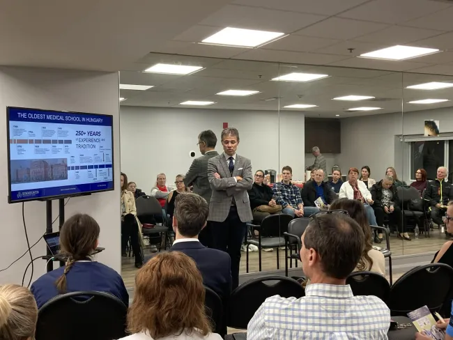 A rendezvény díszvendége Prof. Dr. Alpár Alán volt, a patinás Semmelweis Egyetem nemzetközi képzésekért felelős rektorhelyettese, egyetemi tanára. Az előadás célja a diaszpórában élő, magyar gyökerekkel rendelkező diákok tájékoztatása volt a Budapesten elérhető magas színvonalú orvosi és egészségtudományi képzési lehetőségekről.