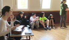 A tanulást játék követte: a jól ismert székfoglaló játékot játszottuk, amely valóban nemzetközi, hiszen szinte mindenhol ismerik a világon, így nem is kellett sokat magyarázni a szabályokat. A különlegességet most az adta, hogy citeraszóra, magyar népdalok dallamára kellett körbe-körbe szaladni a székek körül. Megható pillanat volt, amikor a játékból kieső gyerekek önkéntelenül tapsolni kezdtek, és így követték tovább a dallamokat. Nekem pedig kedvem támadt énekelni a dalokat.
