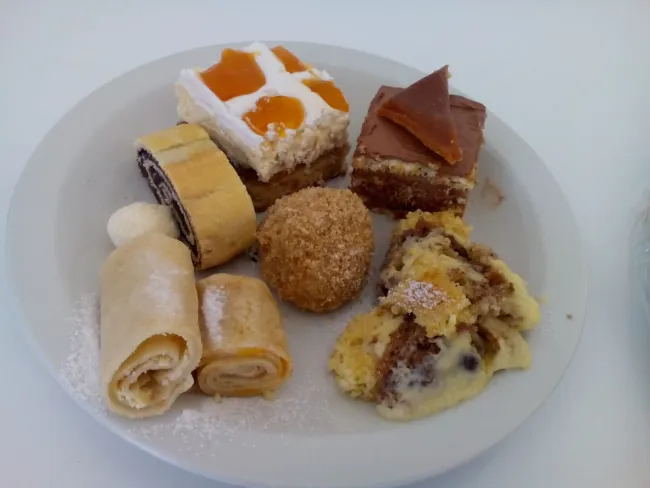 Az ünnep a magyar finomságokból álló uzsonnával folytatódott. A córdobai magyarok megkóstolhatták az általuk korábban még nem ismert Rákóczi-túróst, somlói galuskát, szilvás gombócot, de a már jól ismert dobostorta, túrós palacsinta és mákos bejgli sem hiányozhatott a tányérokról.