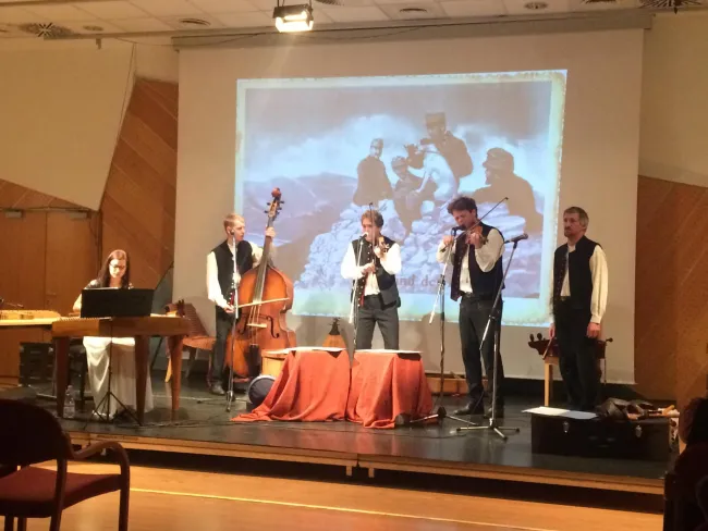 "Ferenc Jóska fújatja trombitát..." címmel tartott előadást a székesfehérvári Kákics népzenei együttes 2017 április 25-én a bécsi Collegium Hungaricumban. A műsor népzenei, történeti visszatekintés volt az első világháborúra. Tárnok Ákos, az együttes vezetője elmondta, hogy előadásuk összeállításához szerteágazó kutatást végeztek, melyhez számos segítséget kaptak.