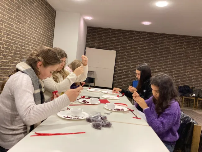 Frankfurtba érkezésem előtt Budapesten volt szerencsém találkozni a mentoraimmal, akikkel meg is beszéltük, hogy közös céljaink egyike a kaláris készítés lesz, így még otthon beszereztem a hozzávalókat. Október végén került sor az első gyöngyfűzésre.