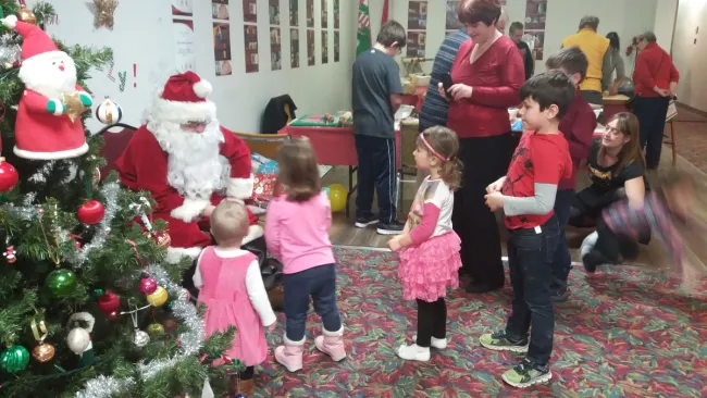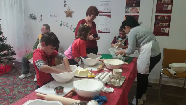 Kis edények, vágódeszkák, nyújtófák sorakoznak az asztalokon, a másik oldalon kézműves sarok, kicsit odébb játékok. Minden a helyén van és arra vár, hogy birtokba vegyék, hogy a rend csendjét a gyerekek hangos nevetése verje fel. Nem kell már sokat várni, kigyúlnak a terem közepében álló karácsonyfa fényei, nyílnak az ajtók, egy pillanat és minden megváltozik. Csillogó kis szemek szórják a fényt.