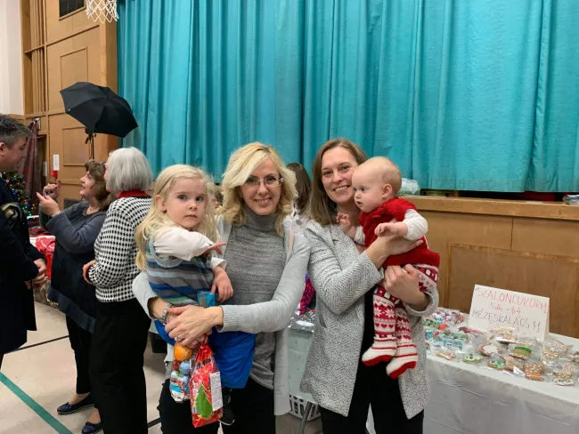 Az iskolások közös produkciója után az eseményt a református gyülekezet és a magyar közösség tagjai által készített finom házi süteményekből álló szeretetvendégség követte. Mindeközben a templom tornatermében az adventi vásárban gyönyörködhettünk, ahol a közösség adományai által a magyar iskolák támogatására volt lehetőség. A sok portéka között helyet kaptak a magyar iskolások által készített szebbnél szebb díszes mézeskalácsok, anyagból készült, csipkével varrott szaloncukrok, zsákbamacskák, képkeretek, karkötők, karácsonyfa- és fali díszek, díszes gyertyatartók és idézeteket rejtő üvegek is. A lehetőségek tárháza Kralovanszky Balázs fotóművész munkáival bővülhetett, aki a helyszínen felállított kis műtermében kreatív díszletek között csodálatos családi fotókat készített, amelyek mosolyt csalnak majd a karácsonyi asztal körül mindenki arcára. A gyerekek örömére mindeközben a Mikulás manói is szorgoskodtak, ezt idén a magyar konzulátus és Palkovics Valér személyesen is támogatta. A közös programok lehetővé tették a különböző városokból érkező magyar közösség tagjainak, hogy jobban megismerjék egymást, lehetőséget teremtett a közös beszélgetésekre és újabb élményekre.