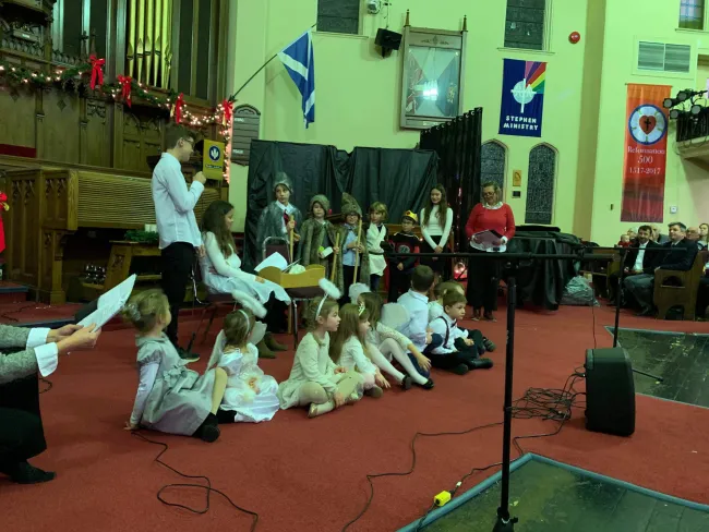A meghitt templomi közegben gyűltek össze a Kitcheneri és a Guelphi Magyar Iskola diákjai és családjuk, hogy együtt ünnepelhessenek. A műsort Szatmári Ferenc lelkipásztor szívhez szóló üzenete indította, amely mindannyiunk számára tanulságos volt. Hiszen, ha gyermeki lélekkel tudjuk szívünkbe fogadni Istent, akkor biztosan tudhatjuk, elérkezett az idő, hogy keresztény emberként megélhessük az ünnepeket. A magasztos hangulat megteremtése után Ankucza Klára, a helyi magyar közösség oszlopos tagja köszöntötte az egybegyűlteket és nem utolsósorban Laky-Takács Péter alkonzult is, aki örömét és köszönetét fejezte ki, hogy körünkben ünnepelhetett. Miután szebbnél szebb köszöntőbeszédekkel sikerült felemelni szívünket, el is kezdhettük megtölteni a Magyar Iskolások gyönyörű műsorával, amely során elsőként a Csendes éj című dalt hallhattuk, amelyet Németh Péter hegedűn és Csapó Máté zongorán adtak elő. A lelkes közönség nagy örömmel hallgatta a kifejezetten erre az alkalomra összeállt duót. Ezt követően a kitcheneri magyar iskolások adták elő betlehemes játékukat, amely a hagyományos történeti formát megtartva új dallamokat is tartalmazott. A produkció utáni tapsvihar arról árulkodott, hogy a közönségnek nagyon tetszett a gyerekek előadása. Ezt követően a Guelphi Magyar Iskola lépett színpadra, akiknek a műsorában megjelentek a gyerekek által készített ritmushangszerek is. Az előadást számos kellék színesítette, mint a gyerekek fején lévő glória, az adventi koszorú a friss fenyővel és a négy csillogó gyertyával, valamint az anyagból készült fenyőfa, amit maguk a gyerekek díszíthettek fel az általuk elmondott vers közben. Az ünnepi dalokat csengettyűszó kísérte.