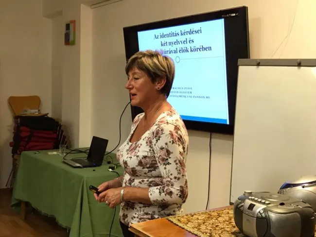 A Bécsi Tudományegyetem Finnugor Tanszéke, az Ausztriai Magyar Kutatóintézet és az Ausztriai Magyar Egyesületek és Szervezetek Központi Szövetsége tudományos előadássorozatának keretén belül Prof. Dr. Navracsics Judit, a Pannon Egyetem (Veszprém) Modern Filológia és Társadalomtudományi Kar Magyar és Alkalmazott Nyelvtudományi Intézet igazgatója tartott előadást a Bécsi Magyar Otthonban.