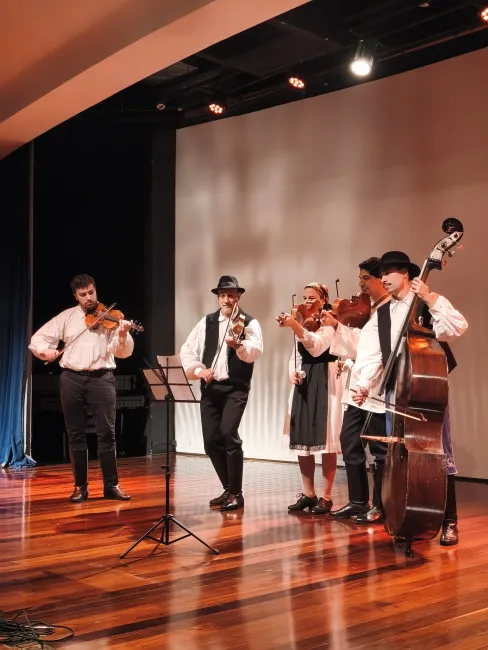 A kulturális program kiemelkedő eleme volt a Pántlika Néptáncegyüttes fellépése, amely látványos koreográfiáival és színes népviseletével nyűgözte le a közönséget. A zenei repertoárt az Esztám Népi Zenekar színesítette palatkai dallamokkal, számomra pedig igazi megtiszteltetés volt, hogy citerámmal közösen állhattam színpadra a São Pauló-i Magyar Kórussal. Végül Felipe Secamilli hegedűtanár tanítványai is egy igazán emlékezetes előadást tartottak. A komolyzenei művek mellett álló taps fogadta a „Csitári hegyek alatt”, a „Tavaszi szél” és a „Hej, Dunáról fúj a szél” szimfonikus feldolgozásait.