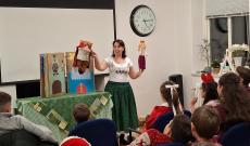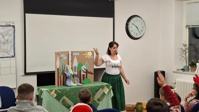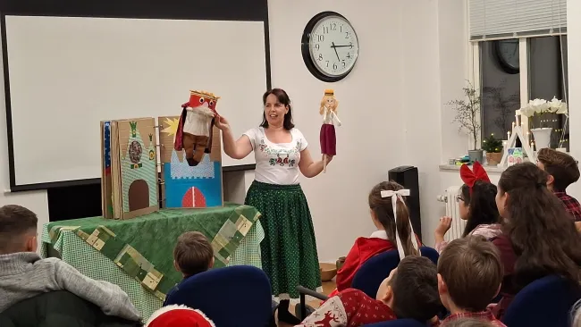 A várva várt ajándékosztást egy igazán lenyűgöző és szívmelengető előadás előzte meg. Kontha Nelli, a batyuszinhaz.hu előadóművésze hozta el a svédországi magyar gyermekekhez az „Elvarázsolt mesék” című tárgybábos előadást.