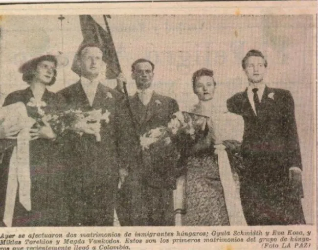 András elbeszélése szerint abból a generációból, akik 1950 előtt érkeztek Kolumbiába, sajnos már mindenki elhunyt. Mikor András szülei megérkeztek, kevés magyar volt Kolumbiában. Volt egy kisebb magyar származású zsidó közösség, akik a magyarországi antiszemitizmus erősödése miatt, a vészkorszak elől menekültek Latin-Amerikába az 1930-as évek végén, 1940-es évek elején. Okos, tehetséges, vagyonos emberek voltak, akik jó szívvel fogadták az újonnan érkező magyar menekülteket.
