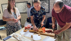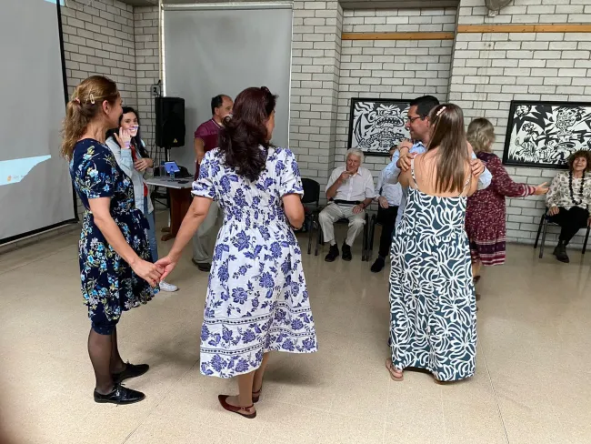 Magyar nap Medellínben. A délután szervezőjével, Hofferek-Tar Jutkával Megkóstoltuk a téliszalámit is. A kóstolót táncház követte. Mindenki nagyon jól érezte magát.