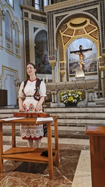 A madridi magyar közösség életében különleges eseménynek lehettünk vendégei a húsvétot követő kedd este. Janurik Tímea citeraművész - aki rendszeresen tart foglalkozásokat és táncházakat a helyi magyarok számára - az elmúlt tanév egyik jól sikerült magyarórája után betért a foglalkozásoknak helyet adó épület mellett található templomba.
