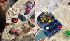 Március 28-án a húsvéti hangolódás és tojásfestés következett, ahol a Bobitával együtt vettem részt. Három asztalnál zajlottak a programok, a kisebbek gyurmáztak, a nagyobbak rajzoltak és papírból készítettek tojásokat, a legnagyobb asztalnál pedig különböző technikákkal festettünk tojásokat. Kipróbáltuk a vízfestést, a papíros technikát, valamint a hagyományos, növényekkel díszített módszert is. A programokat én vezettem, igyekeztem mindenhol segíteni a gyerekeket. Az esemény jó hangulatban telt, sok szép tojás készült, a gyerekek pedig örömmel vitték haza az alkotásaikat.