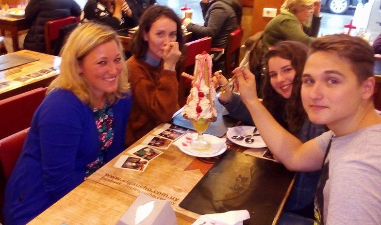 A verseny utáni utolsó két napon már csak azt kellett kisakkoznunk, hogyan nézzünk meg minél több mindent a városban. Az 1930-as labdarúgó stadionba, Estadio Centenario-ba sikerült elvinnem őket. Az ottani jegyszedő ismerte az Aranycsapatot, Puskásról és Kocsisról is megemlékeztünk. Elkísért minket a kiállítás azon részére, ahol láthattuk az 1954-es Uruguay-Magyarország meccset. Ezt követően egy finom helyi pizza elfogyasztása után, helyi busszal Malvin folyópartra vettük utunkat. A buszon szólt a zene, ez szerintem mindenkinek tetszett. Keresztül mentünk a város szegényebb területein, úgy gondoltam nem árt látni a fiataloknak, hogy a belvároson és a minőségi szállodás részen kívül, milyen egyéb helyek vannak Montevideóban. Mikor a partra értünk, a szél szerelmesei, a kite-ozók fogadtak minket. A folyóparti séta közben tojáshéjakra is bukkantunk, amiről később megtudtuk, - egy itteni biológus fiútól -, hogy puhatestűek tojásai.