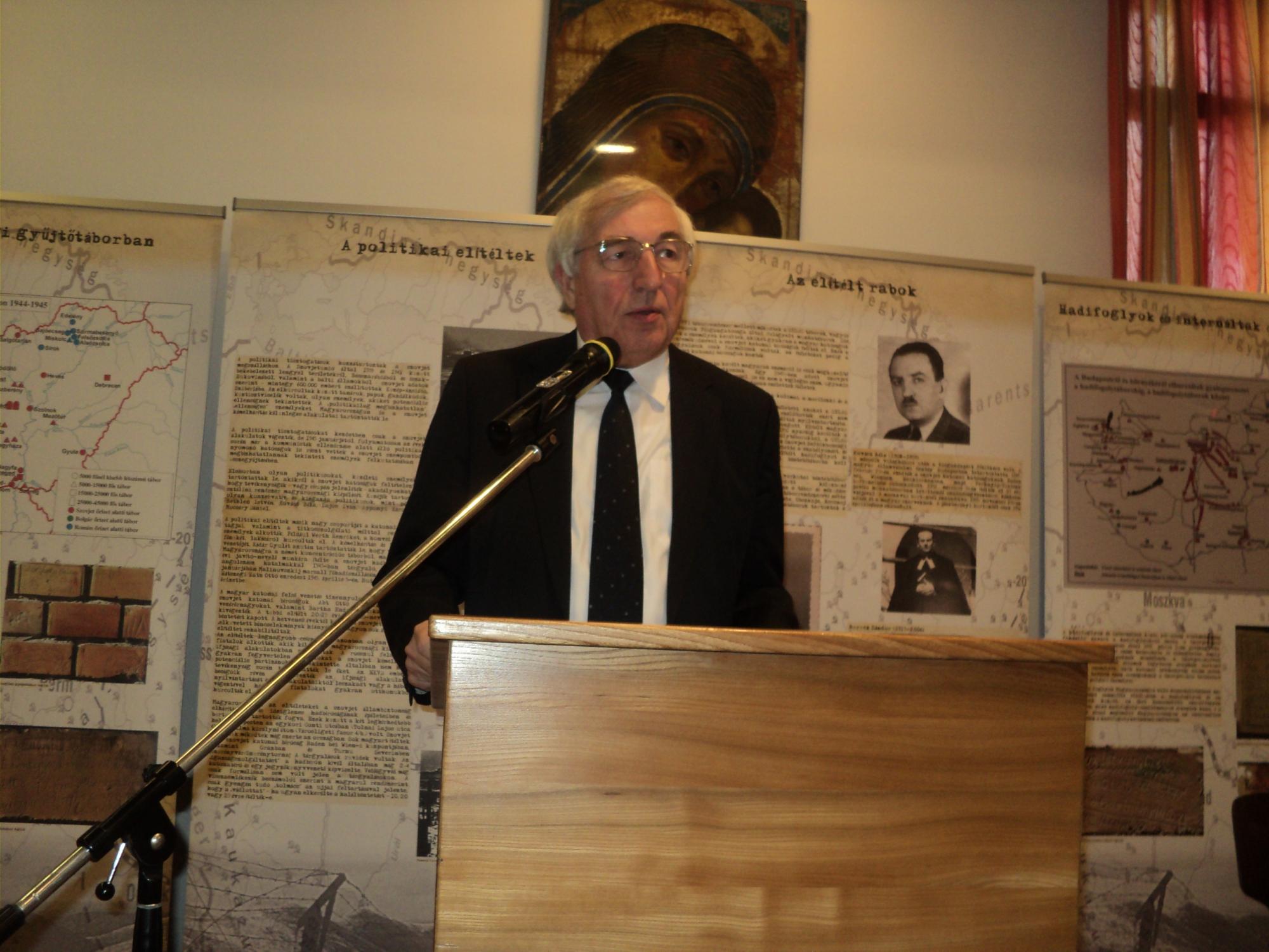 Vencser László morálteológus, az ausztriai idegen nyelvű lelkészségek országos igazgatója a jelenlévőket a Magyar Országgyűlés elnöke, Kövér László szavaival köszöntötte, melyek szerint „a történelmi múltra kegyelettel és pontosan kell emlékezni, mert a jelenben így lehet felelősen cselekedni, továbbá így lehet reményt adni a jövőnek”. A továbbiakban kiemelte, hogy közös történelmi eseményeinkre való közös visszatekintésünk, nemzeti ünnepeink közös megünneplése mind azt fejezi ki, hogy egy nemzethez tartozunk, bárhol is van a szülőföldünk és bárhol is éljünk a világban. Ez a kiállítás az emlékezés mellett felszólítást is jelent számunkra a jövőre nézve: fel kell mutatnunk a világnak a történelem fájdalmas fejezeteit is, hogy abból tanulhasson a jelen és a jövő nemzedéke – hívta fel a figyelmet Vencser László, majd Soren Kierckegard (1813–1855) dán filozófus-teológus gondolatát adta útravalóul: „Az élet csak úgy érthető, ha visszatekintünk, de csak úgy élhető, ha előrenézünk.” Mi visszatekintünk, hogy megértsük az életet, és előrenézünk, hogy azt élni tudjuk. Kívánom, hogy a kiállítás segítsen minket itt a diaszpórában magyar keresztény jövőnk építésében, hittel, reménnyel és összetartó szeretettel – zárta szavait az ünnepi szónok.