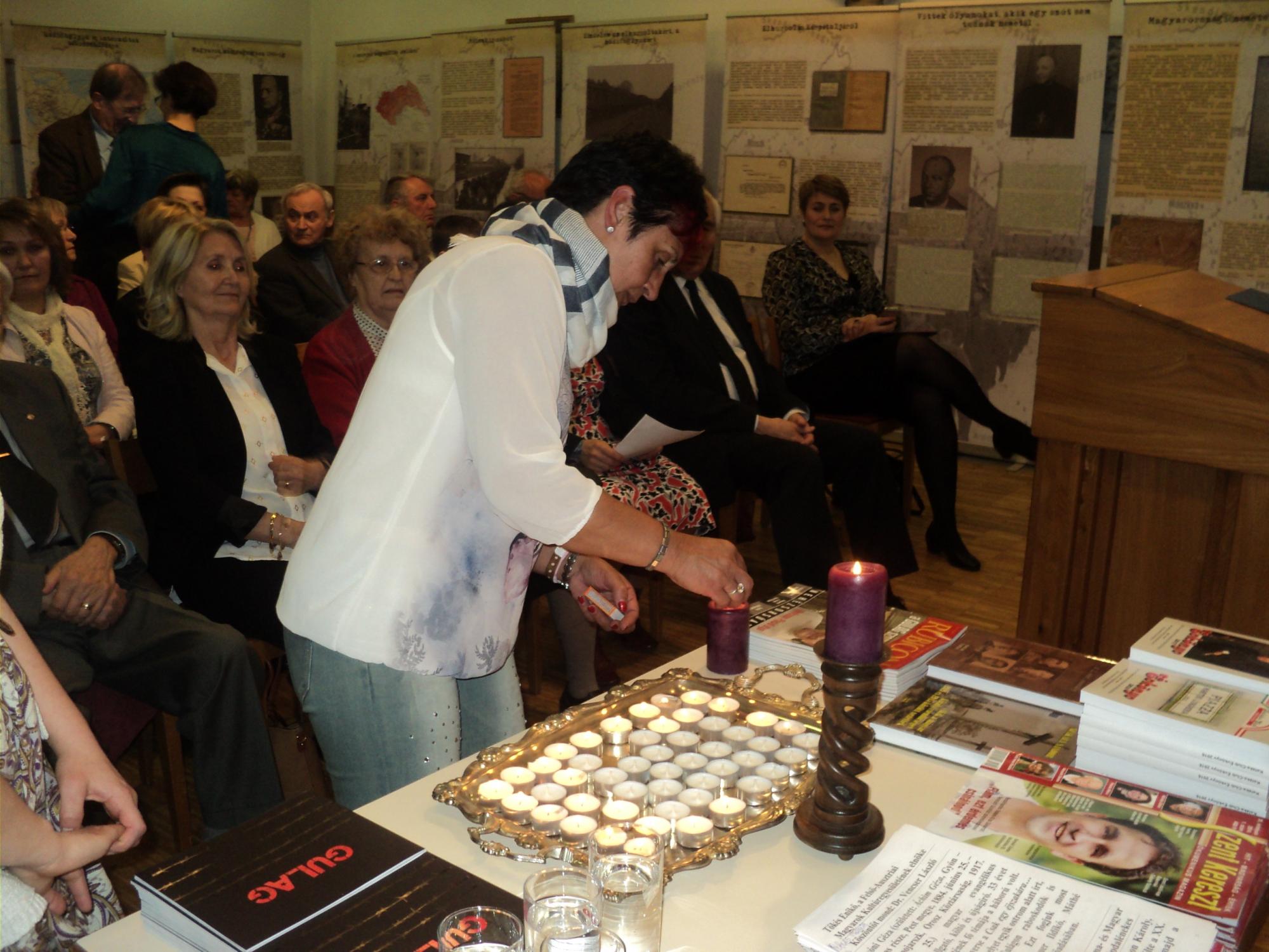 Szavai után és Petrás Mária hosszú Kyrie eleison fohászéneke alatt a teremben csaknem mindenki előrejött az erre a célra elhelyezett kisasztalhoz és meggyújtott azon egy kismécsest vagy egy konkrét Gulág-áldozat-hozzátartozójára emlékezve, vagy általában az áldozatok emlékére.
