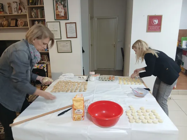 Luca-napi pogácsákat sütöttünk az eseményre. Közkívánatra kétféle pogácsa készült: töpörtyűs és krumplis. A hagyomány szerint pénzérméket is elrejtettünk a pogácsákba. A hiedelem szerint ugyanis aki a pénzes pogácsát kapja, az anyagi jólétre számíthat a következő évben.