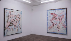 A képeken gyakran találkoztunk emberi formákkal, testrészekkel, arcfoszlányokkal, de volt, hogy kimondottan portrészerűen jelent meg egy arc. Meglepődve hallottuk, hogy a magabiztos vonalvezetés ellenére a figurák élethű és pontos ábrázolása modell nélkül történik. A kiállítás során egyszerre éreztem azt, hogy a forma, a személy szeretne kifejeződni, kibújni a vászonból, és azt, hogy szeretne benne minél mélyebbre elrejtőzni. Számomra a kiállítás címe („Wannabes”) épp erre utalt: egy személy megtestesülésére, aki egyszerre van jelen és veszik el a hétköznapokban, szeretne „valaki” lenni a hétköznapokon túl, miközben szembesül a létért folytatott küzdelem alapvető gondjaival. Lehetett ez egy paplanba burkolózó személy (személyes értelmezés mentén akár pár, vagy ugyanaz a személy többször, ismétlődően), a haragos zöldek között elvesző emberalak (a környezetpusztítás mértéktelen mivoltára utalva): a kiállítás egyértelműen a tudomásunkra jutatta: a „valakinek lenni”, mint érzés, egyáltalán nem áll távol a hétköznapjainktól.