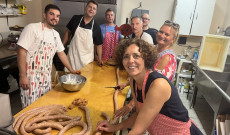 A következő héten, a férfiaké volt a főszerep, hiszen kolbászt gyúrtunk, töltöttünk, füstöltünk. Ahonnan én jövök Gyuláról, ott is nagy múltra tekint vissza a kolbászkészítés, illetve békéscsabai nagyapám receptjét is megismertettem az itteniekkel. A kolbász készítőkkel és feleségeikkel sikerült ismét egy jó hangulatú napot összehozni. A dolgos nap végén megkóstoltuk közösen a sült kolbászt, és jót beszélgettünk, ismerkedtünk.