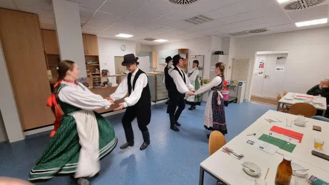 A Csöbörcsök Néptáncegyüttes táncosai szatmári és palatkai táncokat mutattak be a Straßen-Universität Stuttgart által szervezett Kulináris Utazás programsorozat magyar estjén.
