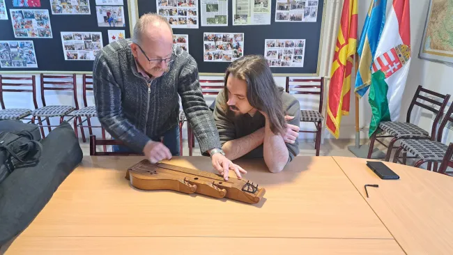 Körtemuzsika, citera, hosszifurugla – csak néhány azon hangszerek közül, amelyeket Micsik Béla hozott Szkopjéba. A vajdasági népzenész, citerakészítő-mester feleségével érkezett az észak-macedón fővárosba, és egyebek mellett rendhagyó zeneórát tartott a szkopjei középfokú zeneiskolában.