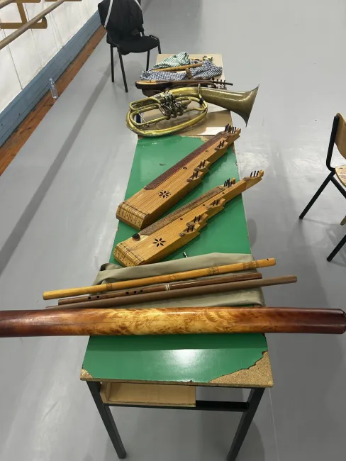 Volt ott citera, tenortrombita, körtemuzsika, hosszifurugla, prímtambura, délvidéki tambura, tekerő, dünnyögő, különféle furulyák és még sok más. A néptánc-, népzene- és népi énekszakosok mellett a rendhagyó zeneórán részt vettek az iskola tanárai, koreográfusai és az iskolaigazgató is.