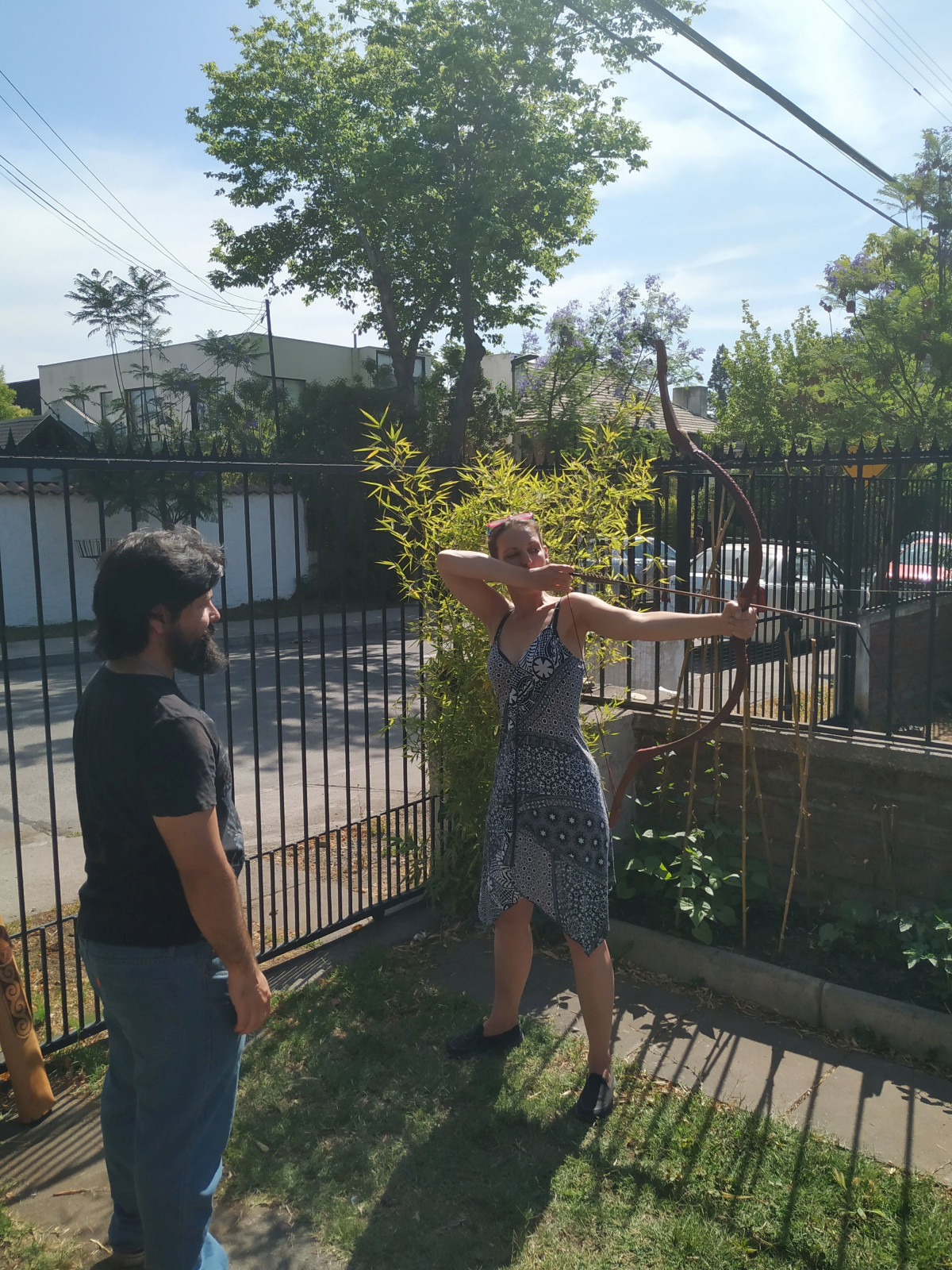 Tizenöt méterről lőhették nyílvesszőiket az érdeklődők a céltáblába a helyszínül szolgáló albérletem kertjében. Több órán keresztül folyt a célba lövés, miközben Juan Pablo magyarázta a helyes testtartást és más fontos részletet, melyek ismerete elengedhetetlen a pontos célzáshoz és a megfelelő erősségű lövéshez. Reményeink szerint a jövőben folytatódni fog rendszeres találkozók formájában a magyar íjászat Chilében.