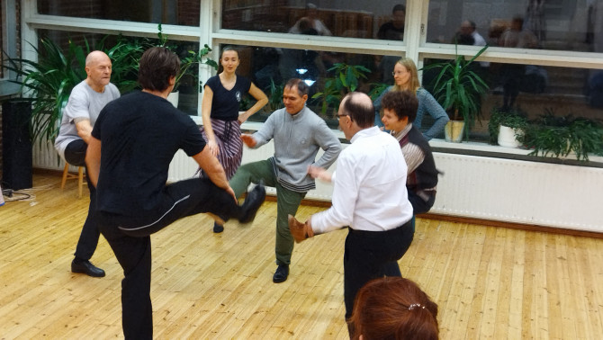 Skót vendégtáncosok az edinburghi magyar táncházban